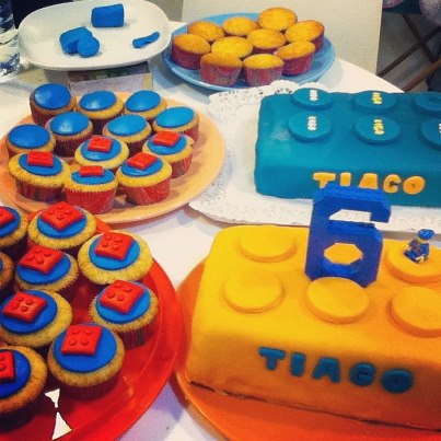 Passei o sábado na cozinha a fazer os bolos. Tànhamos falado no tema do Lego, que o Tiago gosta muito e criei um board no Pinterest para inspiração. Os bolos pareciam relativamente simples portanto, como sou maluca, achei que para a escola era mais giro enviar cupcakes para cada criança ter o seu bolinho individual. É de facto uma boa ideia mas fiquei até à s nove da noite a decorar cupcakes com peças de lego feitas com pasta de açúcar 😛