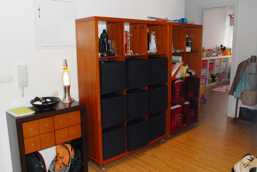 Também aproveitei para criar finalmente as prateleiras temáticas que queria fazer desde que nos mudámos. Ainda não está tudo arrumado no Hall mas gosto das três que já estão.