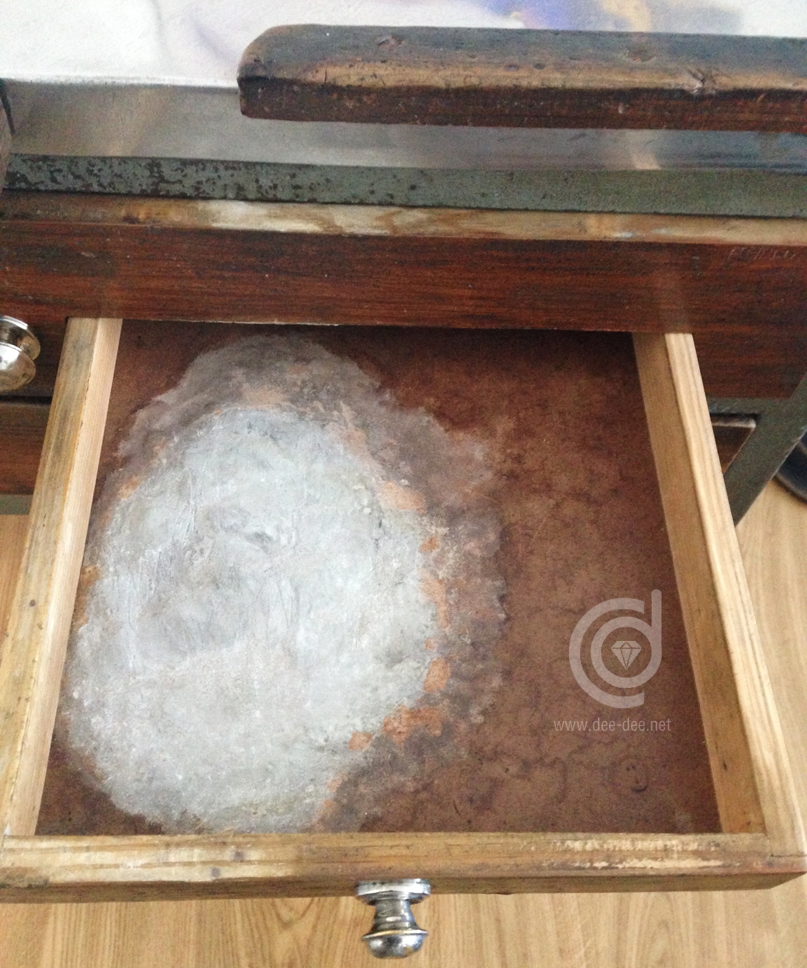 Passei um dia a limpar aquilo o melhor que pude e ainda falta tirar a ferrugem, pintar e eventualmente mudar os puxadores das gavetas para dar um ar mais simpático à bancada. Estou desejosa de a começar a usar mas sei que se não perco um bocadinho a pà´-la em condições arrisco-me a que se deteriore mais, o que era uma pena depois deste trabalho todo.