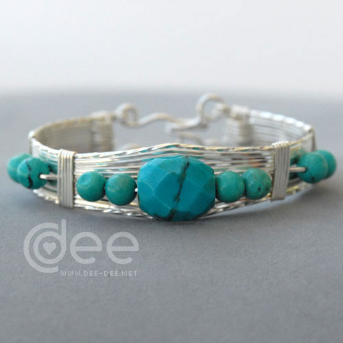 Once everything was polished, I connected the main shape to the small diamond shape with the post through a wrapped connector with a small onix bead.