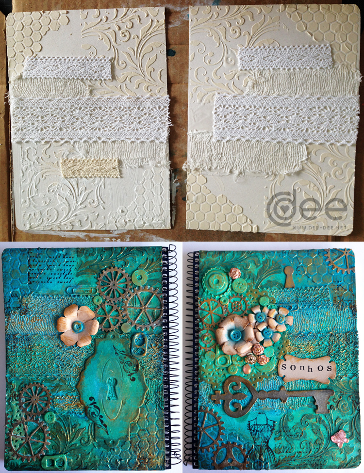 Como tenho andado numa onda steampunk, comprei finalmente uns cortadores de rodas dentadas para a Sizzix e uma série de stencils e atirei-me a uns projectos de mixed media.