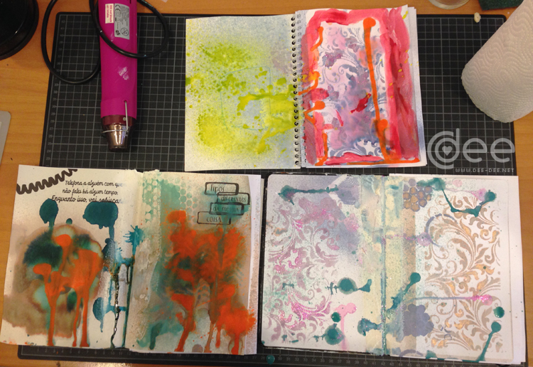 Sei que nada disto ficou espectacular mas o objectivo não é esse. É apenas divertir-me e experimentar materiais e técnicas sem medo de “estragar”. Essa liberdade é algo que me custa muito, à s vezes. Tenho uma grande tendência para o controlo e o perfeccionismo, que é óptimo nalgumas coisas mas péssimo para expressão artàstica e criatividade.